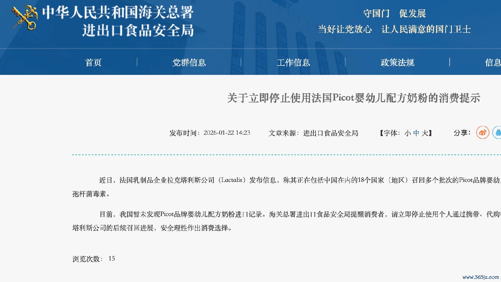 国家海关总署:立即停止使用法国Picot婴幼儿配方奶粉蜡样芽孢杆菌毒素的影响仍在持续。